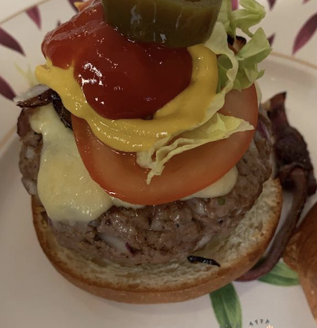 - While the cheese is melting fry some red onion rings in a pan until golden brown (for the toppings)